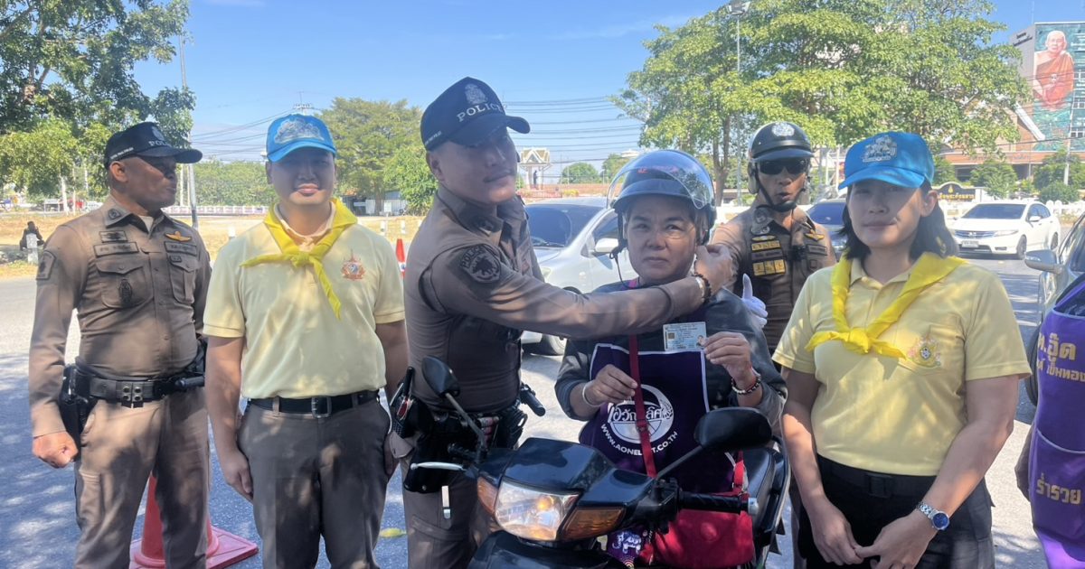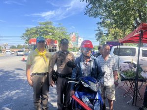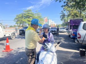 วันที่ 28 ธ.ค. 67 เวลา 11.00 น. พ.ต.ท. กฤตย์ วงษ์ศรีเมือง รอง ผกก.ป.สภ.ท่าม่วง พ.ต.ต. สาน จะยันรัมย์ สวป. (ชส.) สภ.ท่าม่วง พร้อมด้วยชุดจิตอาสา สภ.ท่าม่วง และสายตรวจจราจร แจกหมวกให้กับประชาชนตามโครงการจิตอาสาจราจร รณรงค์ขับขี่ปลอดภัย สวมหมวกนิรภัย เพื่อลดอุบัติเหตุจราจรทางบก ในช่วงเทศกาลปีใหม่ พ.ศ.2568 บริเวณที่ตั้งจุดตรวจหน้าเขื่อนแม่กลอง