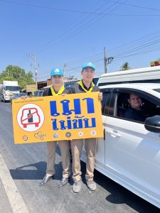 ร.ต.อ.พนม สมบูรณ์ รอง สว.(ป.) สภ.ท่าม่วง พร้อมด้วยชุดจิตอาสา รณรงค์ขับขี่ปลอดภัย “เมาไม่ขับ” ช่วงเทศกาลสงกรานต์ พ.ศ. 2569 บริเวณถนนแสงชูโตสายนอก