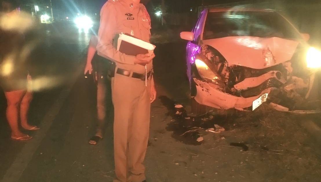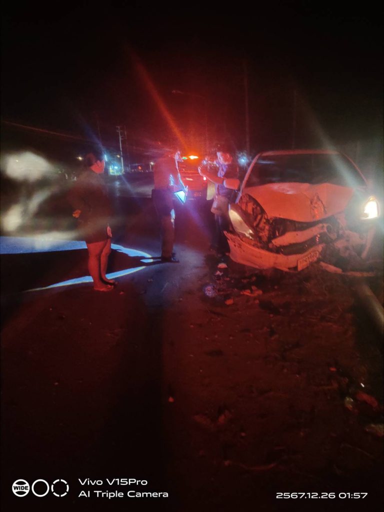 วันที่ 26 ธ.ค. 67 เวลา 01.42 น. ร.ต.อ. ชุมพล เหลืองเอี่ยม รอง สว. (สอบสวน) สภ.ท่าม่วง พนักงานสอบสวนเวร ออกตรวจสถานที่เกิดอุบัติเหตุรถชน พบรถยนต์เก๋งชนเสาไฟฟ้า มีผู้บาดเจ็บ บริเวณ ต.วังขนาย อ.ท่าม่วง จ.กาญจนบุรี