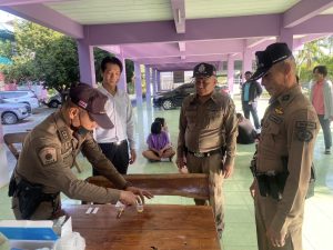 วันที่ 3 ม.ค. 68 เวลา 09.00 น. พ.ต.อ.พิทักษ์ ว่องพานิช ผกก.สภ.ท่าม่วง พ.ต.ท.กฤตย์ วงษ์ศรีเมือง รอง ผกก.ป.สภ.ท่าม่วง พ.ต.ท.วันชัย สามเกษร สวป.สภ.ท่าม่วง ว่าที่ พ.ต.ต.สาน จะยันรัมย์ สวป.(ชส.)สภ.ท่าม่วง พร้อม ร.ต.อ.แดนชัย เจียมเอ้ย ร้อยเวร 20 สายตรวจรถยนต์ สายตรวจม่วงชุม และ ครู D.A.R.E ร่วมตรวจหาสารเสพติดนักเรียนโรงเรียนชุกพี้และร่วมลงนามบันทึกข้อตกลงความร่วมมือในการป้องกันยาเสพติดในสถานศึกษาตามโครงการสถานศึกษาสีขาวปลอดยาเสพติดและอบายมุขประจำปีการศึกษา 2567