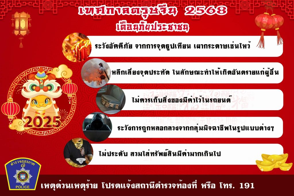 ตำรวจเข้มงวดป้องกันอาชญากรรม แนะนำประชาชนระวังภัย เทศกาลตรุษจีน 2568 27 มกราคม 2025 โดย adm_thamuang adm_thamuang / ข่าวประชาสัมพันธ์ ตำรวจเข้มงวดป้องกันอาชญากรรม แนะนำประชาชนระวังภัย เทศกาลตรุษจีน 2568 จำนวนผู้อ่าน: 16