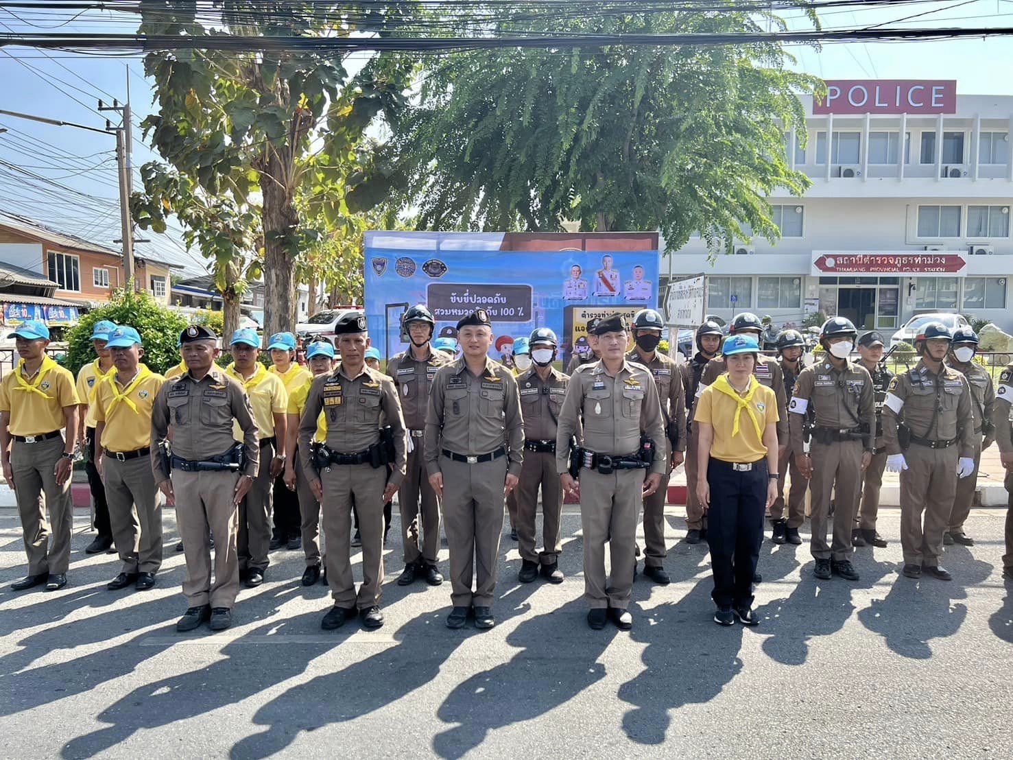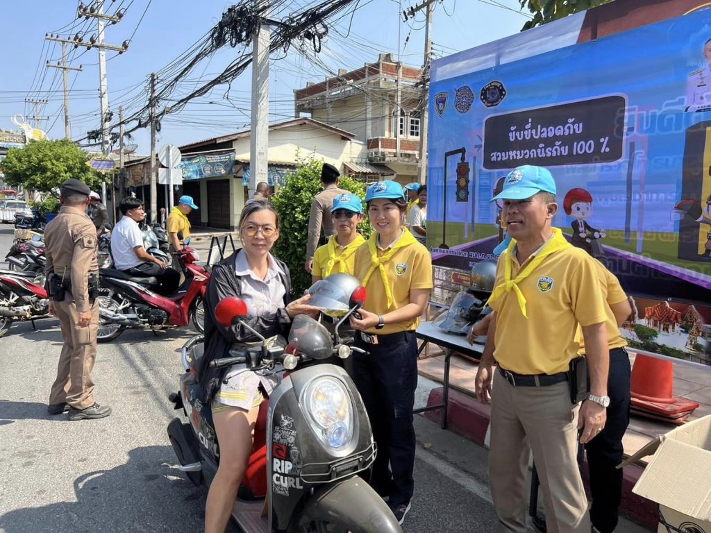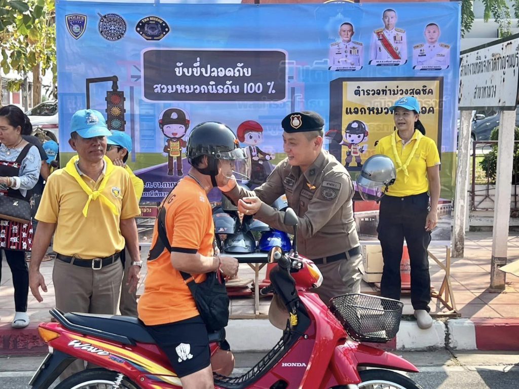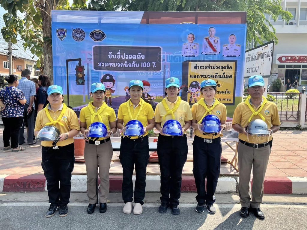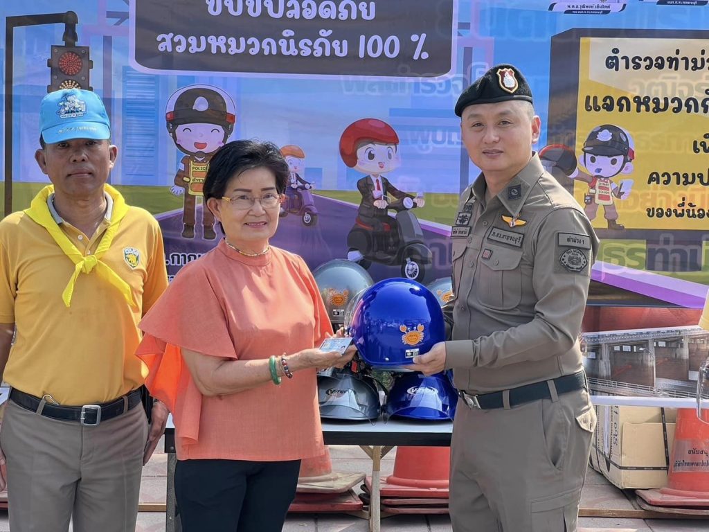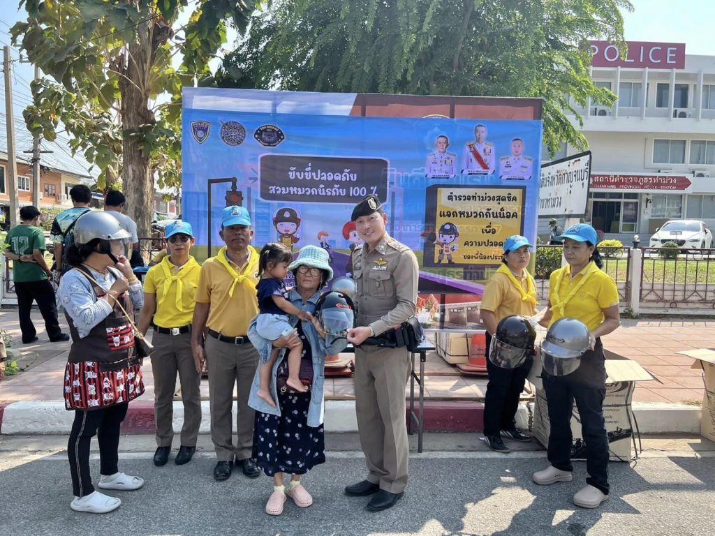 เมื่อวันที่ 22 กุมภาพันธ์ 2567 เวลาประมาณ 10.00-11.00 น. ภายใต้การอำนวยการของ พ.ต.อ.วุฒิพงษ์ เย็นจิตต์ รอง ผบก.ภ.จว.กาญจนบุรี พ.ต.อ. พิทักษ์ ว่องพานิช ผกก.สภ.ท่าม่วง พ.ต.ท. กฤตย์ วงษ์ศรีเมือง รอง ผกก.ป.สภ.ท่าม่วง พ.ต.ท.วันชัย สามเกษร สวป.สภ.ท่าม่วง พ.ต.ท.หญิง ฤทัย มาตรวิจิตร สว.ธร.สภ.ท่าม่วง พ.ต.ต. สาน จะยันรัมย์ สวป.(ชส.)สภ.ท่าม่วง พร้อมด้วยข้าราชการตำรวจ สภ.ท่าม่วง ,จราจร และชุดจิตอาสา สภ.ท่าม่วง ออกประชาสัมพันธ์ รณรงค์การขับขี่ปลอดภัยสวมหมวกนิรภัย 100 % และมอบหมวกนิรภัยให้กับประชาชนที่ขับขี่รถจักรยานยนต์ จำนวน 100 ใบ บริเวณหน้า สภ.ท่าม่วง หมู่ 1 ต.ท่าม่วง อ.ท่าม่วง จ.กาญจนบุรี