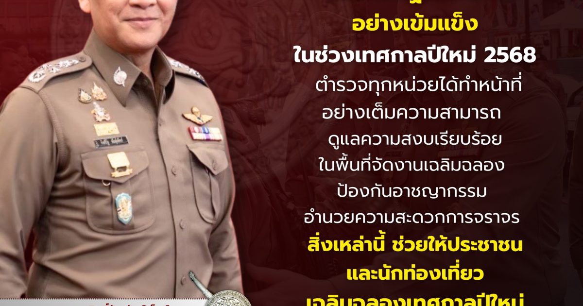 ผู้บัญชาการตำรวจแห่งชาติขอบคุณตำรวจทั่วประเทศ ดูแลความปลอดภัยช่วงปีใหม่ 2568 พร้อมย้ำความสำเร็จในการลดอุบัติเหตุและอาชญากรรม