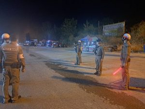 รอง ผกก. ป. สภ.ท่าม่วง พ.ต.ท.วันชัย สามเกษร สวป.สภ.ท่าม่วง พ.ต.ต.สาน จะยันรัมย์ สวป.(ชส.)สภ.ท่าท่วง (ผู้ควบคุมการปฏิบัติ) พร้อมด้วย สายตรวจ20 ร.ต.อ.เสกสรร รัมมะอรรถ รอง สว.จร.สภ.ท่าม่วง ร้อยเวร 60 พร้อมกำลังสายตรวจจราจร นักเรียนนายสิบฝึกงาน รวม 24 นาย ร่วมตั้ง ว.43 บริเวณถนนสาธารณะ ม.2 ต.ม่วงชุม อ.ท่าม่วง จ.กาญจนบุรี เพื่อกวดขันวินัยจราจร ได้ให้นโยบายให้ใช้กริยาวาจาสุภาพ ปฏิบัติหน้าที่ด้วยความเข้มแข็ง และดูแลรักษาสุขภาพและสวัตดิภาพในการทำงาน
