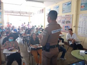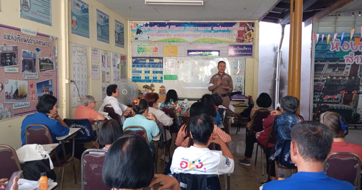 ร.ต.ท. พงษ์สันติ์ อินสา รองสว.(จร) สภ.ท่าม่วง ด.ต.พัชรากร เปอร์ดี ผบ.หมู่ ป.สภ.ท่าม่วง เป็นวิทยากร โครงการตาสับปะรดต้านยาเสพติดและขับขี่ปลอดภัย. ณ ศูนย์การเรียนรู้ระดับตำบลอำเภอท่าม่วง