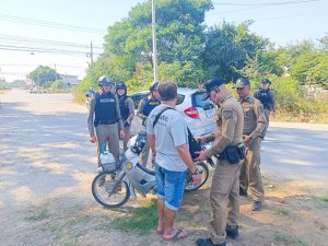 วันที่ 18 ธ.ค. 2567 เวลา 10.40 น. พ.ต.ท. กฤตย์ วงษ์ศรีเมือง รอง ผกก.ป.สภ.ท่าม่วง พ.ต.ท.วันชัย สามเกษร สวป.สภ.ท่าม่วง พ.ต.ต.สาน จะยันรัมย์ สวป.(ชส)สภ.ท่าม่วง สั่งการให้ ร.ต.อ.สนธยา หวังเจริญ ร้อยเวร 20 สายตรวจรถยนต์ 221 จยย.111 ว.4 ออกตรวจเพื่อเป็นการป้องกันเหตุอาชญากรรมในพื้นที่ ตั้งจุดตรวจเคลื่อนที่และตรวจค้นกลุ่มเป้าหมาย กลุ่มเสี่ยง(ปะฉะดะ) ตั้งว.43 ถนนสาธารณะ ต.ท่าม่วง อ.ท่าม่วง จ.กาญจนบุรี