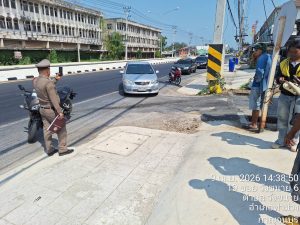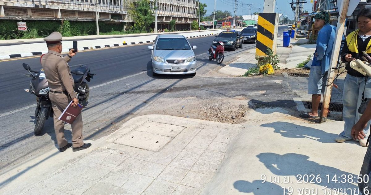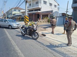 พนักงานสอบสวนออกตรวจเหตุรถชนรหว่าง รถยนต์เก๋งกับรถจยยบริเวณถนนสายท่าม่วงสายในมุ่งหน้าวัดวังขนาย ต.วังขนาย อ.ท่าม่วง