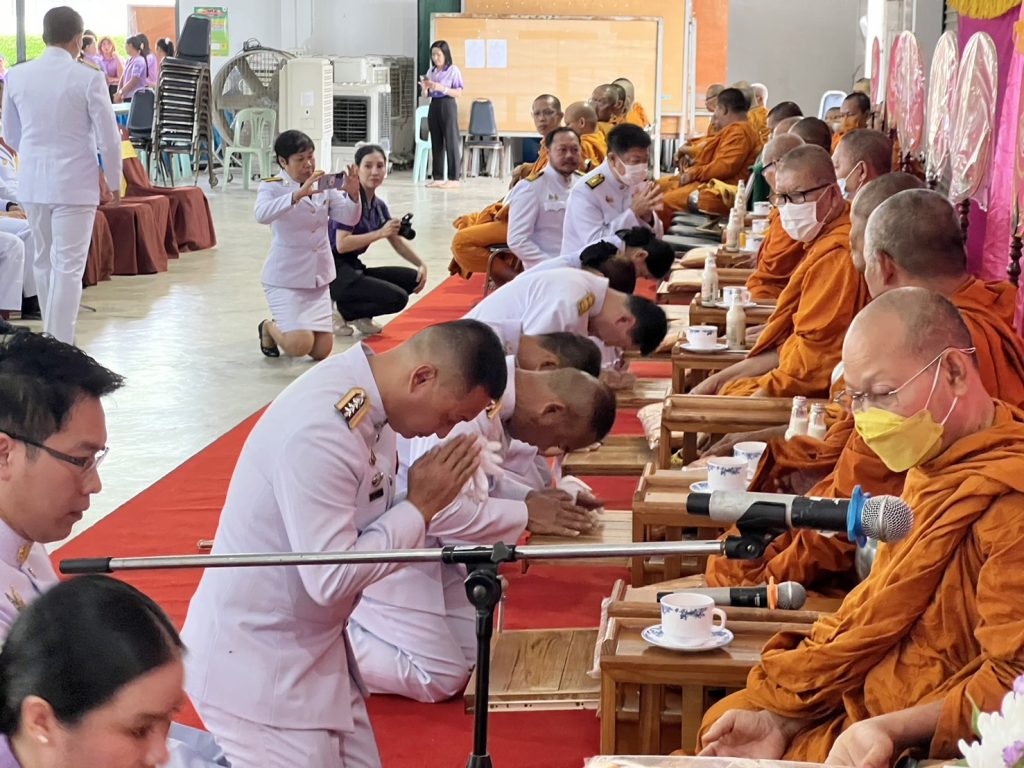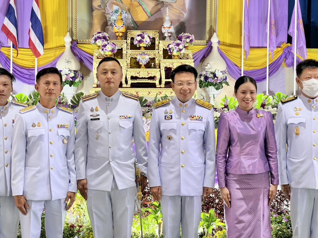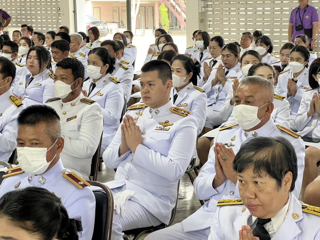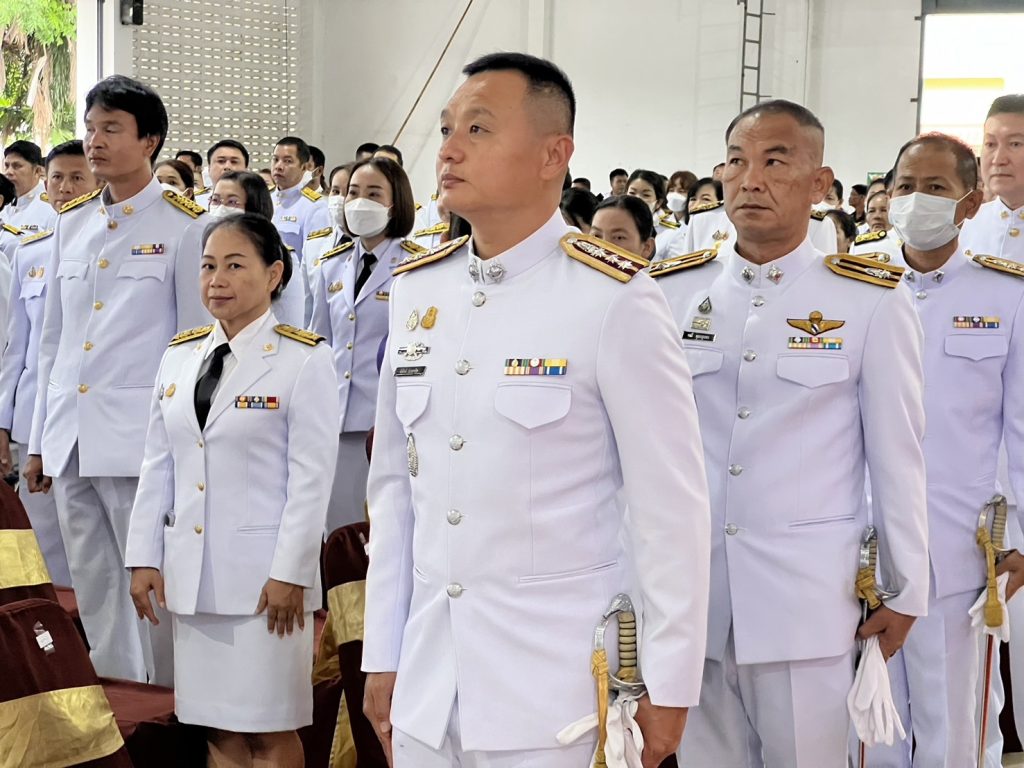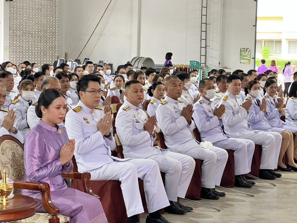 พร้อมด้วย หัวหน้าส่วนราชการ ข้าราชการ ผู้บริหารองค์กรปกครองส่วนท้องถิ่น พนักงาน ฯลฯ เข้าร่วมพิธีโดยพร้อมเพรียงกัน