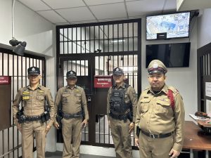 วันที่ 16 ธ.ค. 67 เวลา 08.00 น. พ.ต.อ.พิทักษ์ ว่องพานิช ผกก.สภ.ท่าม่วง พ.ต.ท.กฤตย์ วงษ์ศรีเมือง รอง ผกก.ป.สภ.ท่าม่วง พ.ต.ท.วันชัย สามเกษร สวป.สภ.ท่าม่วง ว่าที่ พ.ต.ต.สาน จะยันรัมย์ สวป.(ชส.)สภ.ท่าม่วง ร.ต.อ.แดนชัย เจียมเอ้ย ปฏิบัติหน้าที่ร้อยเวร 20 เรียกแถวสายตรวจผลัด ใหม่-เก่า เคารพธงชาติ กล่าวอุดมคติตำรวจ ราชสวัสดิ์ 10 ประการ ชี้แจงข้อราชการ ตรวจแผนการตรวจ ฝึกยุทธวิธี แล้วปล่อยแถวออกปฏิบัติหน้าที่ ตรวจห้องควบคุมผู้ต้องหาพบ ส.ต.ท.นฤทธิ์ฯ ปฏิบัติหน้าที่ผู้ควบคุมผู้ต้องหาประจำวันนี้ รายงานเหตุการณ์ปกติ ห้องควบคุมมั่นคงแข็งแรง มีผู้ต้องหาในการควบคุม – คน กำชับให้ดูแลความสะอาดและตรวจนำสิ่งของเข้าห้องควบคุมให้เคร่งครัด