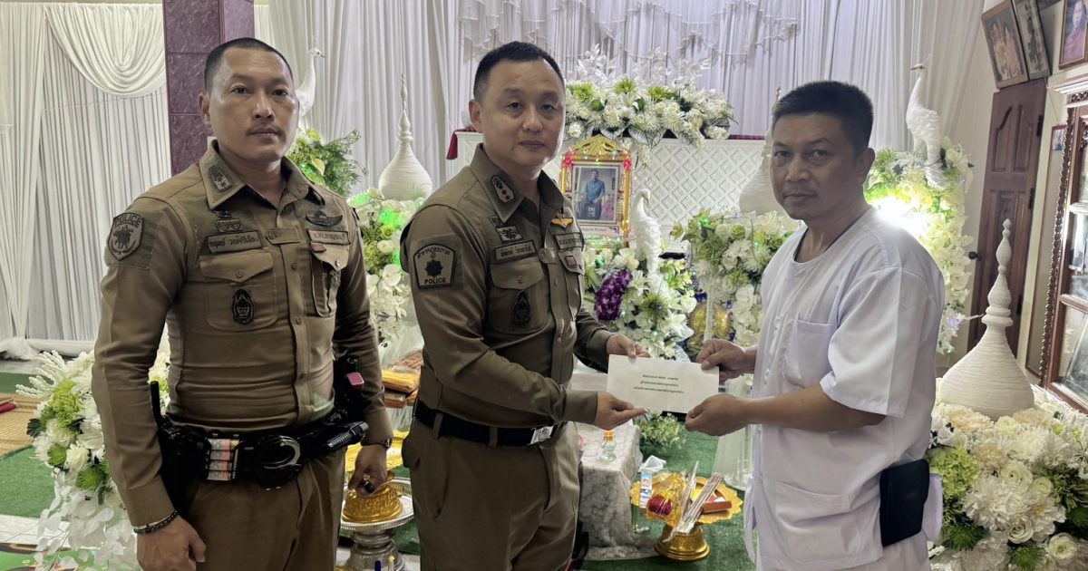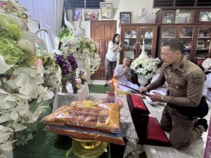 พร้อมข้าราชการตำรวจ สภ.ท่าม่วง เป็นเจ้าภาพสวดพระอภิธรรมศพ คุณพ่อบุญรอด ทิวาภรณ์ บิดา ของ ด.ต. พุธพงษ์ ทิวาภรณ์ ผบ.หมู่ (ป.) สภ.ท่าม่วง พร้อมทั้งมอบเงินช่วยเหลือเสริมสร้างขวัญและกำลังใจฯ ของ ตำรวจภูธรภาค 7 และของ สภ.ท่าม่วง แก่ ครอบครัว ด.ต. พุธพงษ์ฯ ณ บ้านเลขที่ 71 หมู่ที่ 4 ต.บัวปากท่า อ.บางเลน จ.นครปฐม