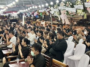 วันนี้ (10 มี.ค. 68) เวลา 19.30 น. พ.ต.อ. พิทักษ์ ว่องพานิช ผกก.สภ.ท่าม่วง พ.ต.ท.หญิง ฤทัย มาตรวิจิตร สว.ธร.สภ.ท่าม่วง พ.ต.ต.อนุ วังขนาย สวป.สภ.ท่าม่วง พ.ต.ต. นิรัญ พั่วพันศรี สว.สส.สภ.ท่าม่วง พร้อมข้าราชการตำรวจ สภ.ท่าม่วง เป็นเจ้าภาพสวดพระอภิธรรม แม่จำปา หล่อศิลาทอง มารดาของ ร.ต.ท. วันชัย หล่อศิลาทอง รอง สว. (ป.) สภ.ท่าม่วง พร้อมทั้งมอบเงินช่วยเหลือเสริมสร้างขวัญและกำลังใจฯ ของ ตำรวจภูธรภาค 7 และของ สภ.ท่าม่วง แก่ ครอบครัว ร.ต.ท. วันชัยฯ ณ บ้านเลขที่ 626 เทศบาลเมืองท่าเรือ-พระแท่น อ.ท่ามะกา จ.กาญจนบุรี