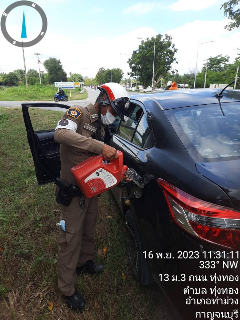 ปฏิบัติหน้าที่เจ้าหน้าที่จราจร พบเห็นประชาชนเดือดร้อนเชื้อเพลิงน้ำมันหมด