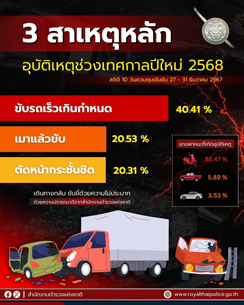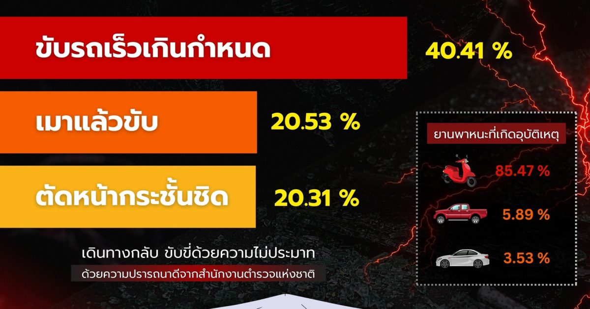 พบว่า 3 สาเหตุหลักของอุบัติเหตุ คือ