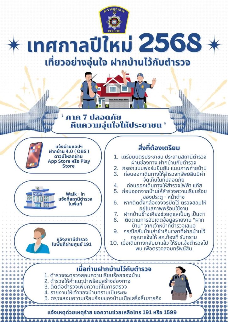 เทศกาลปีใหม่ 2568 เที่ยวอย่างอุ่นใจ ฝากบ้านไว้กับตำรวจ