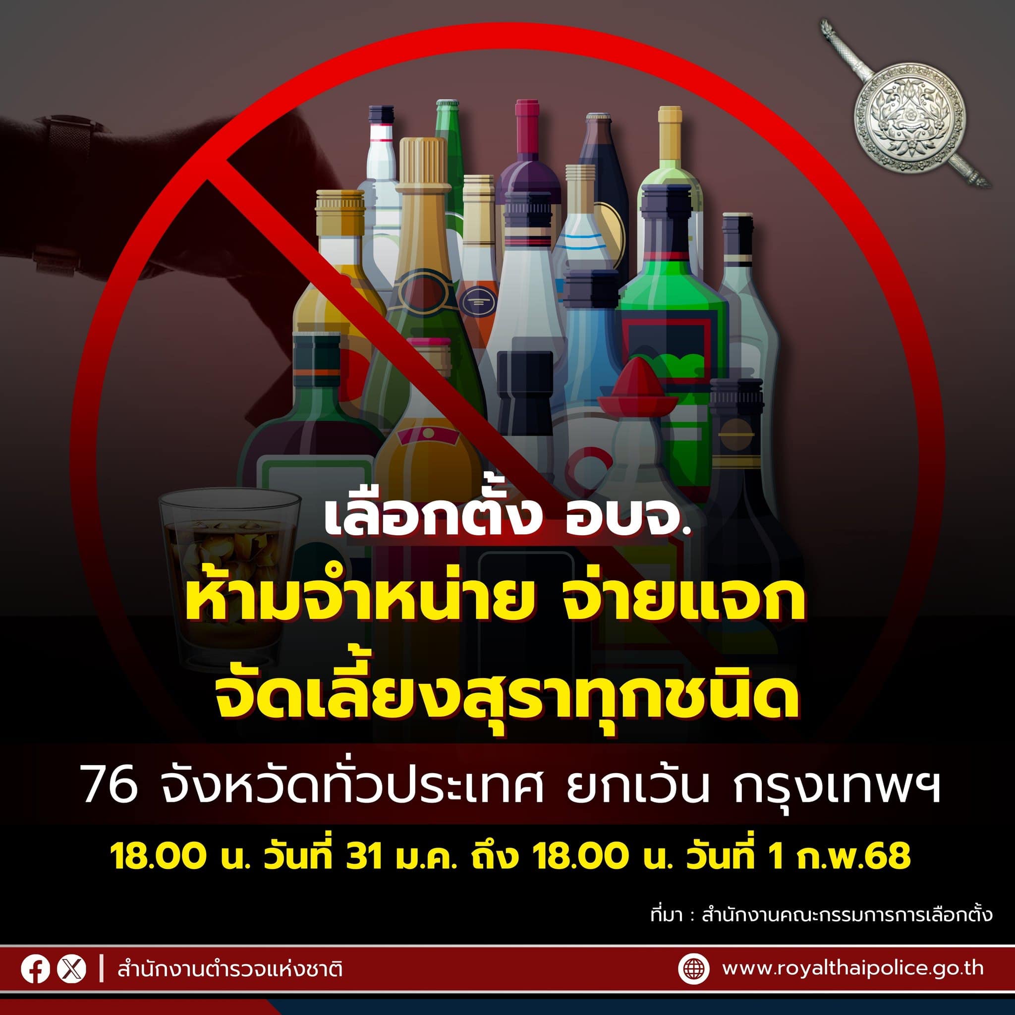 ห้ามขาย จำหน่าย จ่ายแจก จัดเลี้ยงสุราทุกชนิด ในพื้นที่ 76 จังหวัดทั่วประเทศ ยกเว้นกรุงเทพมหานคร เนื่