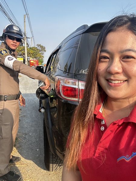 เจ้าหน้าที่จราจร สภ.ท่าม่วง ช่วยเหลือประชาชนน้ำมันเชื้อเพลิงหมด