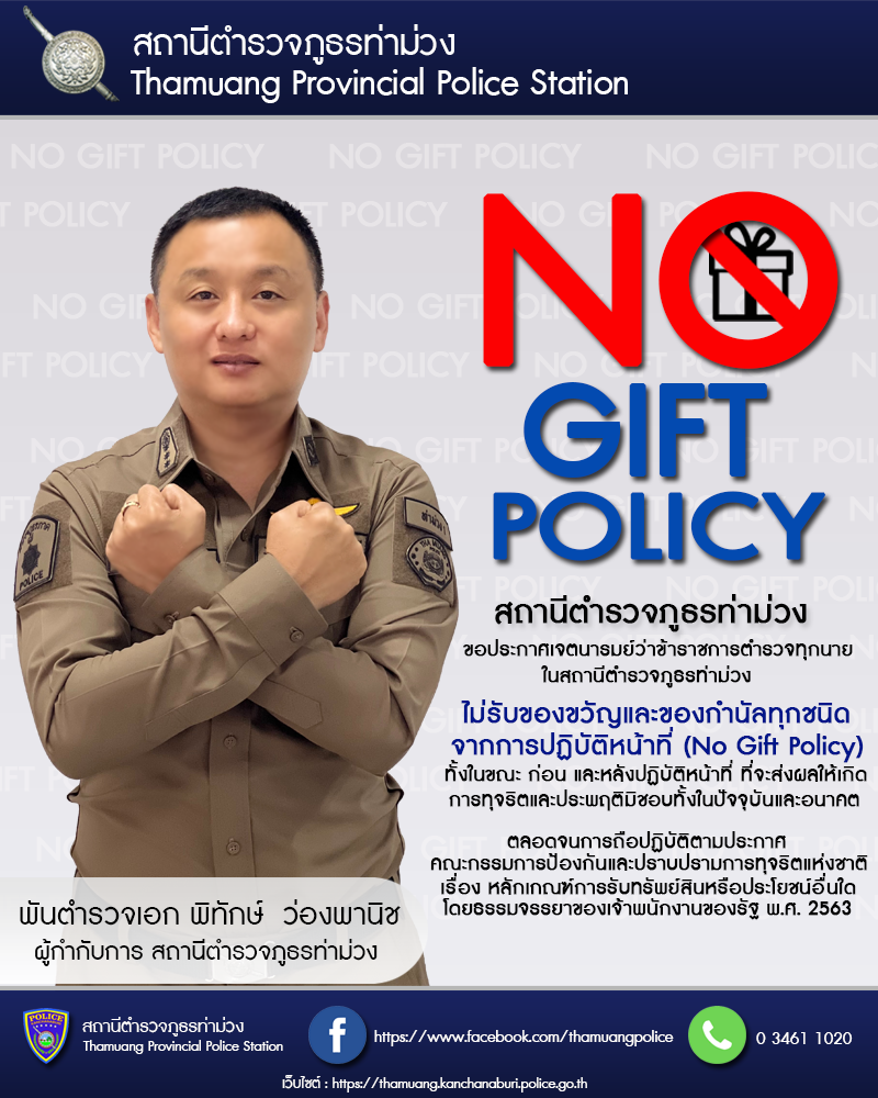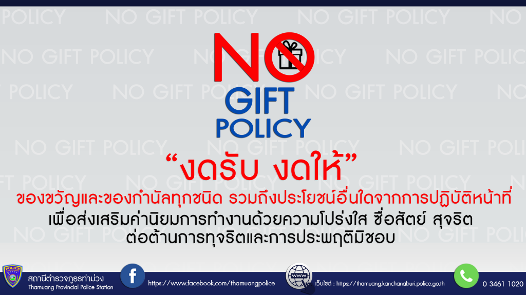 เจตนารมณ์ที่จะไม่รับของขวัญและของกำนัลทุกชนิดจากการปฏิบัติหน้าที่ (No Gift Policy) ฉบับภาษาไทย