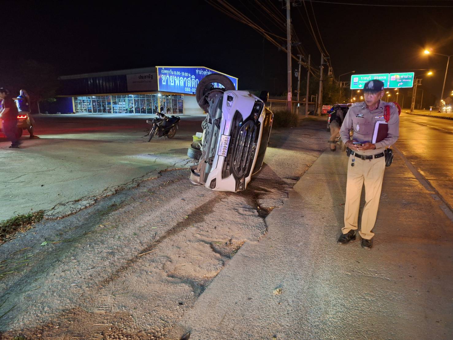 พนักงานสอบสวนเวร พร้อมสายตรวจม่วงชุม ตรวจสถานที่เกิดเหตุรถชน
