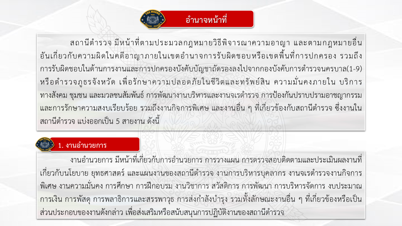 อำนาจหน้าที่ของแต่ละตำแหน่งในสถานีตำรวจ