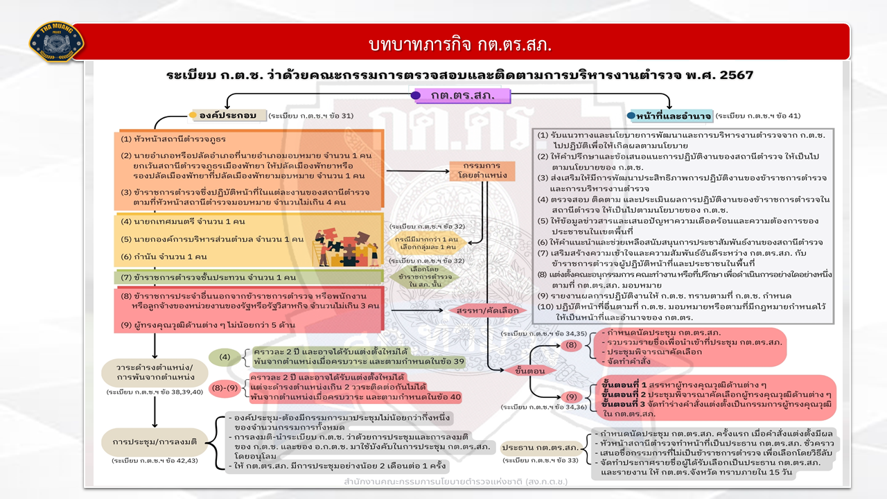 ที่มา: คู่มือการดำเนินการตำมระเบียบ ก.ต.ช. ว่าด้วยคณะกรรมการตรวจสอบและติดตามการบริหารงานตำรวจ พ.ศ. 2567